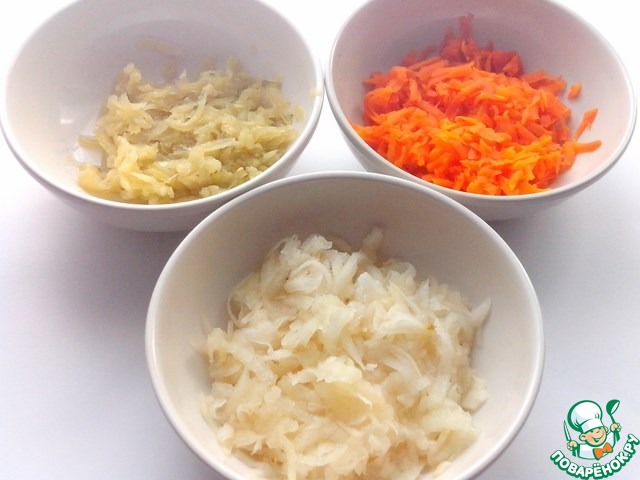 Натереть на крупной терке (или нарезать мелким кубиком) вареную морковь, маринованные огурцы (не слишком острые) и грушу ( очищенную от кожицы). Натертую грушу слегка сбрызнуть лимонным соком, чтобы не потемнела. Я брала грушу "Конференция".
