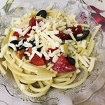 Ингредиенты для «Спагетти с помидорами и маслинами»: