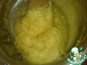 Затем начинаем добавлять по одному яйца. И тщательно перемешивать, чтобы получилась однородная масса.
