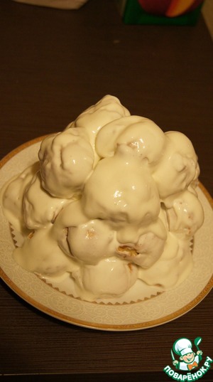 Необычное сочетание начинки из вареной сгущенки и сметанного крема... И, конечно, не совсем традиционное применение профитролей )))