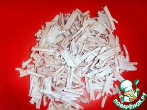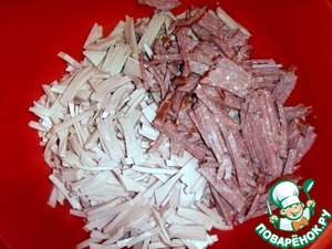 - Колбаса (По 100 г "Докторской" и полукопченой,типа "сервелата") — 200 г