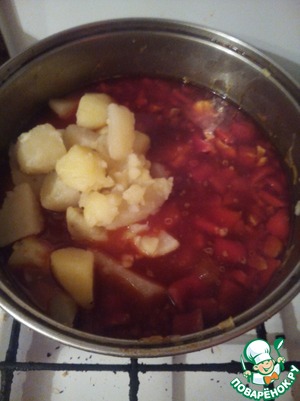 Тушим внимание пока картошка не станет как обмылки. Все края уйдут в густоту соуса.