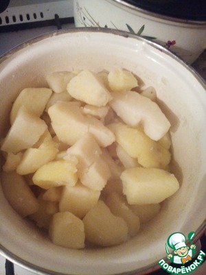 Картошку ставим вариться немного подсолив. На маленький огонь. Важно. Потом поймёте.
