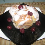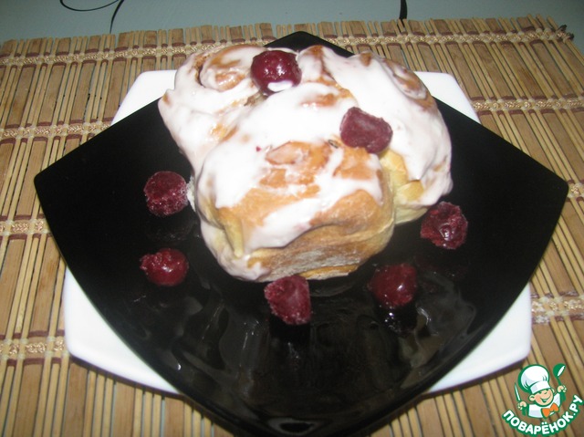 А проще говоря - завитушка с корицей, какао, имбирем, гвоздикой... и другими специями. Под снежной "шапкой" из сливочной глазури, с ноткой клюквенного "заката". Этот рецепт я хочу подарить милой барышне, отзывчивому и приятному виртуальному другу - Ирочке (Ируня)! Предупреждаю, будет сладко!