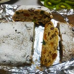 в центре - штоллен с марципановой "колбаской", завернутой в тесто;