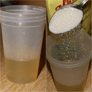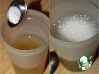 Добавить в рассол 4 ст. л. сахара, нагреть в микроволновой печи в течении 1 мин. при мощности 800 Вт.