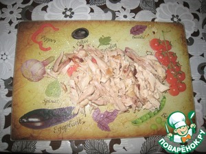 6. Отваренный окорочок отделить от костей и нарезать соломкой