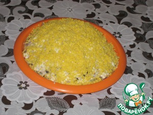 11. Раскрошить желтки и покрыть ими салат