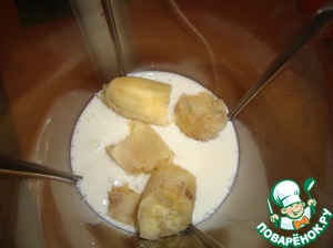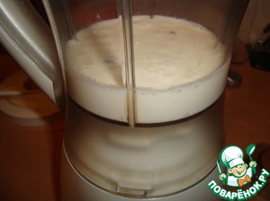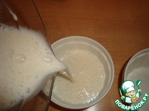 Когда желатин разбухнет, наливаем в чашку блендера кефир.