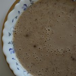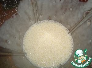 Нагреваем желатин до растворения, не даем закипеть, и через ситечко процеживаем в кефирную смесь. Еще раз пробиваем блендером.
