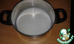 Воду немного подогреть и развести в ней сухое молоко (данные ингредиенты можно заменить 400 мл цельного молока).