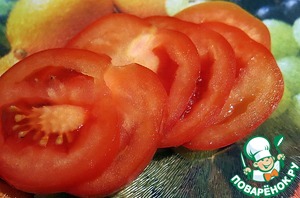 Подготовим ингредиенты. Помидор нарежем тонкими ломиками.