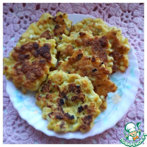 Рецепт «Кукурузные оладьи из кальмара и рыбы»: