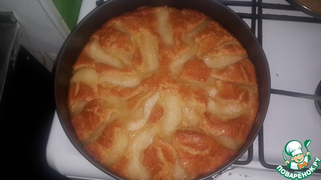 Я его немного изменил с вашего позволения. Взял форму пошире 26 см. Ничего не убавлял, а даже добавил сахара в карамель 150г. и взял 6 груш . Получилось что то вроде "Тиррольского пирога". Все, кто пробовал, в восторге.