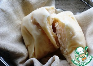 Для начала делаем творог из ряженки. Делаете это удобным для вас способом:можно нагреть на водяной бане или способом заморозки, о котором мне недавно поведали и который я решила применить на этом рецепте. Ряженку положить в морозилку на ночь. Утром достать, ободрать упаковку, в кастрюлюку поставить сито, на него марлю или льняную ткань и сверху выложить нашу замороженную ряженку. Оставить на сутки при комнатной температуре.