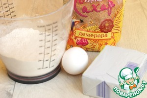Смешаем мягкое масло с сахаром, яйцом и ванильным сахаром. Добавим разрыхлитель и муку. Замесим тесто.