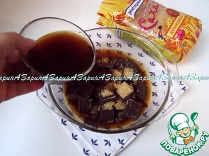 Я использовала не просто воду, как в первоначальном рецепте, а заварила кофе. Процедила его и отмерила 240 мл. Добавила в него алкоголь (у меня домашняя ванильно-апельсиновая настойка).