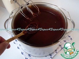 Как только шоколад растворился, он будет как бы хлопьями - но это не страшно. Снять кастрюльку с плиты и поместить в заранее приготовленную кастрюлю большего размера, либо с ледяной водой, либо со льдом, чтобы дно кастрюли с шоколадом касалось их поверхности.