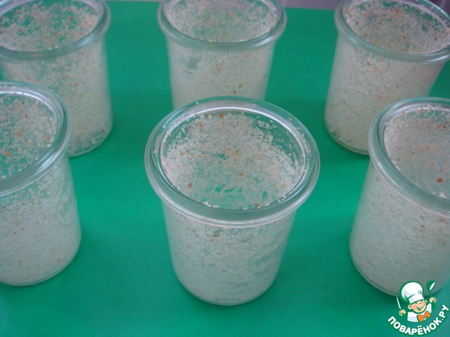 Подготовить формочки для выпечки, смазав их маслом. У меня очень удобные стеклянные формы, которые мне подарила Ниночка. Я их еще обсыпаю панировочными сухарями.