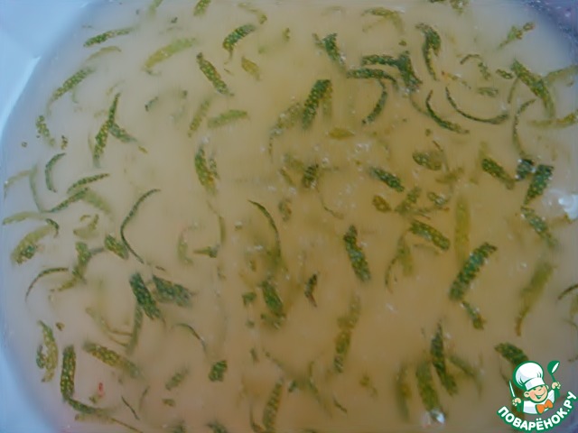Для глазури размешать соки лаймов и апельсина, цедру лайма и сахар до полного растворения сахара. Можно слегка подогреть, чтобы ускорить процесс.