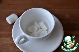 Кладём в кружку маршмеллоу. У меня большие кусочки, я их нарезала.