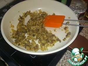 Добавляем к нему наши грибочки и жарим минут 7 до готовности