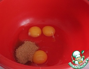 Яйца слегка взбить с тростниковым сахаром (у меня были мелкие, я взяла 3 шт.)