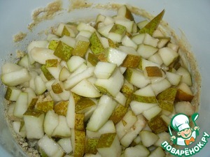 Добавить в полученное тесто измельчённые грецкие орехи и груши с лимонным соком.