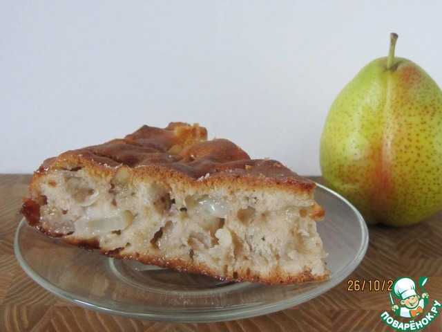Рецепт суперский, получается как торт. Я его каждый год осенью пеку, когда есть свои груши и под окном созрели грецкие орехи.