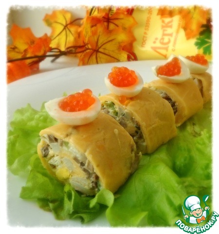 Рецепт «Сырный рулет с грибами и кальмарами»:
