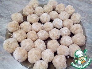 Скатать в шарики и обвалять в муке.