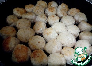 На сковороду налить немного масла и слегка обжарить фрикадельки.