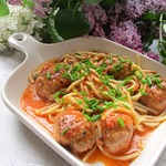 Спагетти с мясными шариками в томатном соусе