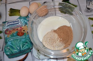 Отруби перемешиваем с клетчаткой, разрыхлителем, белками (или целымии яйцами), кефиром (здесь подойдет любая молочная продукция по Вашему вкусу), какао и коричневый сахар Демерара fine от ТМ "Мистраль".