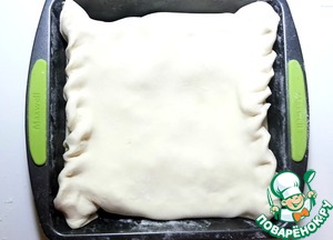 Если есть желание, можете посерединке сделать небольшую дырочку - тогда пирог во время приготовления не поднимется шапкой (я не сделала этого, и у меня образовалась шапка - в итоге тесто потрескалось на макушке, но вкус от этого хуже не стал).