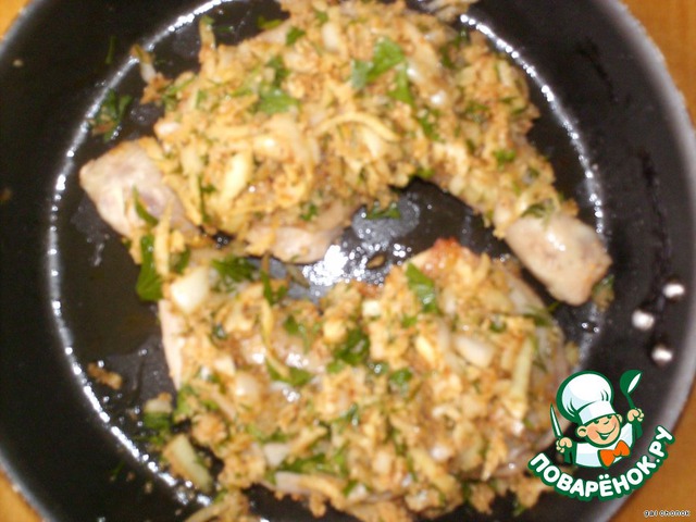 Курица под сырной корочкой, с луком и зеленью. Муж был в восторге только и было слышно мм...