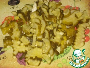 • 2. Берем огурчики СОЛЕНЫЕ!!! и также режем их соломкой