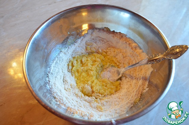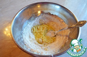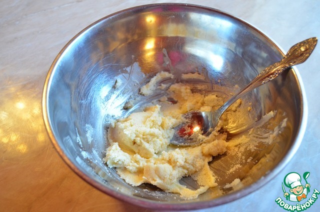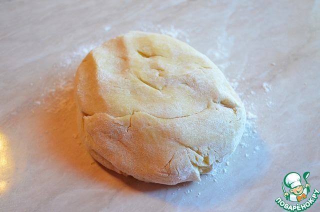 Замесить тесто, обернуть в пленку, убрать на 1 час в холодильник.