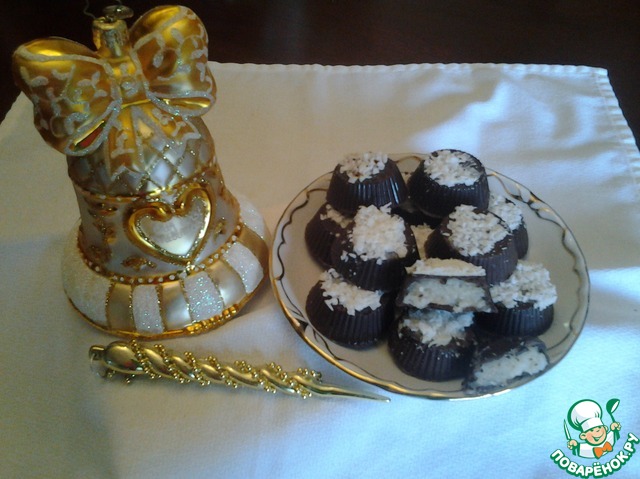 P.S. Крем у меня остался.. я из него сделала еще и конфеты Баунти. Выложила на бумагу, сформировала пласт, квадрат 2см примерно высотой. Разрезала его на полоски и заморозила. Затем полила шоколадом. Ну вкусноооо... гораздо вкуснее конфет Баунти.
