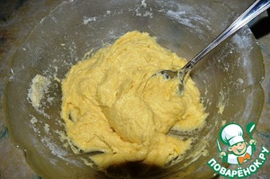 Замесить руками (перетереть в крошку), постепенно добавляя остальную муку, добавить яйца.