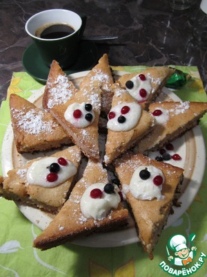 Пирог получается достаточно сладким, если уменьшить количество сахара, добавить соли, то можно его подавать к мясным и овощным блюдам.