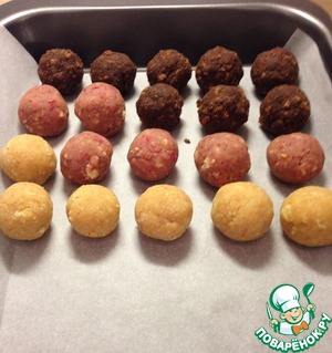 Из полученной массы катаем шарики размером с грецкий орех и отправляем в холодильник на 2 часа. Я оставила их на ночь.