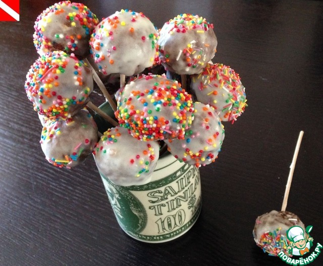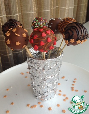 Окунаем палочку в шоколад и затем вставляем в шарик (на 1/3 шарика).