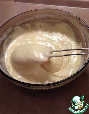 Снимаем с водяной бани и взбиваем миксером около 10 минут. Взбиваем до тех пор, пока на белках не будет оставаться след от проведенного по ним пальца.