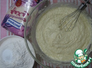 Добавляем муку с разрыхлителем. Перемешиваем.