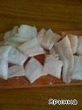 Рыбку порезать на кусочки, посолить и обжарить в муке с двух сторон до золотистого цвета.