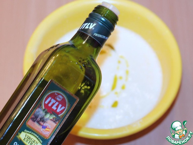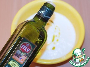 Затем, я влила 1 ст. л. оливкового масла и хорошо вмешала в массу.