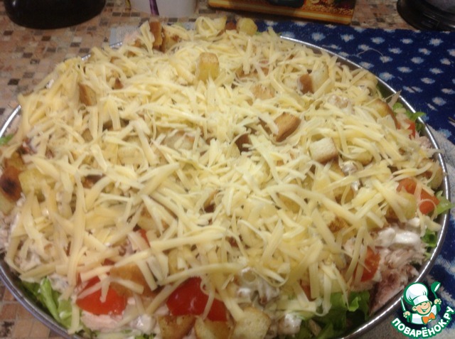 [+4]Оригинальный "Цезарь" нам не по карману, а этот вариант получился вкусным и быстрым в приготовлении.