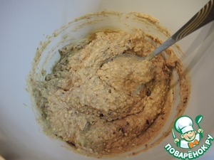 К овсянке с фисташками добавить муку, коричневый сахар, корицу, разрыхлитель, перемешать все венчиком.