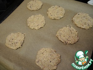 Выложить на противень, застеленный пекарской бумагой, кружки теста и выпекать в разогретой до 190 градусов духовке 7-8 минут, до золотистого цвета. Тесто увеличивается в диаметре в 2 раза.